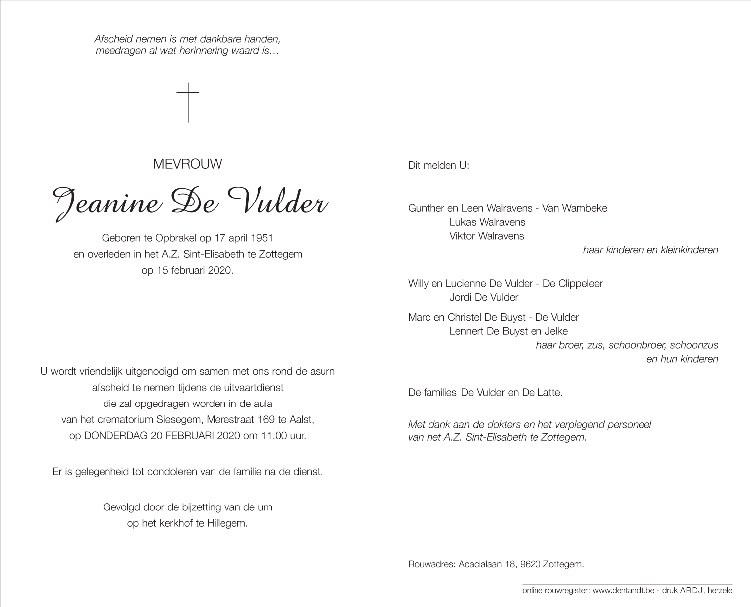 Overleden te Zottegem (9620) op zaterdag 15 februari 2020 op 68-jarige leeftijd