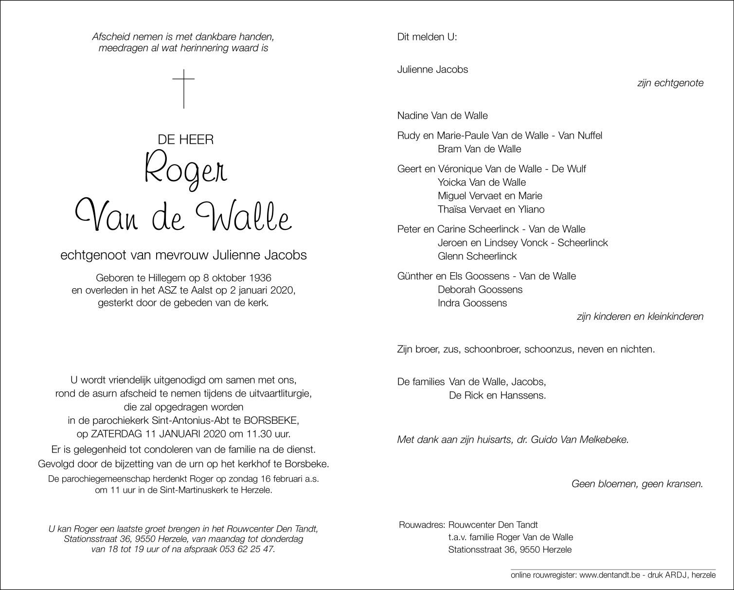 Overleden te Aalst (9300) op donderdag 2 januari 2020 op 83-jarige leeftijd