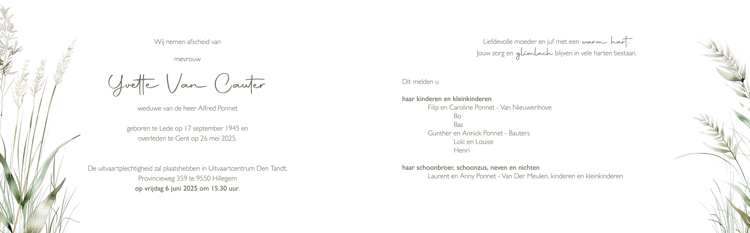 Overlijdensbericht binnenkant