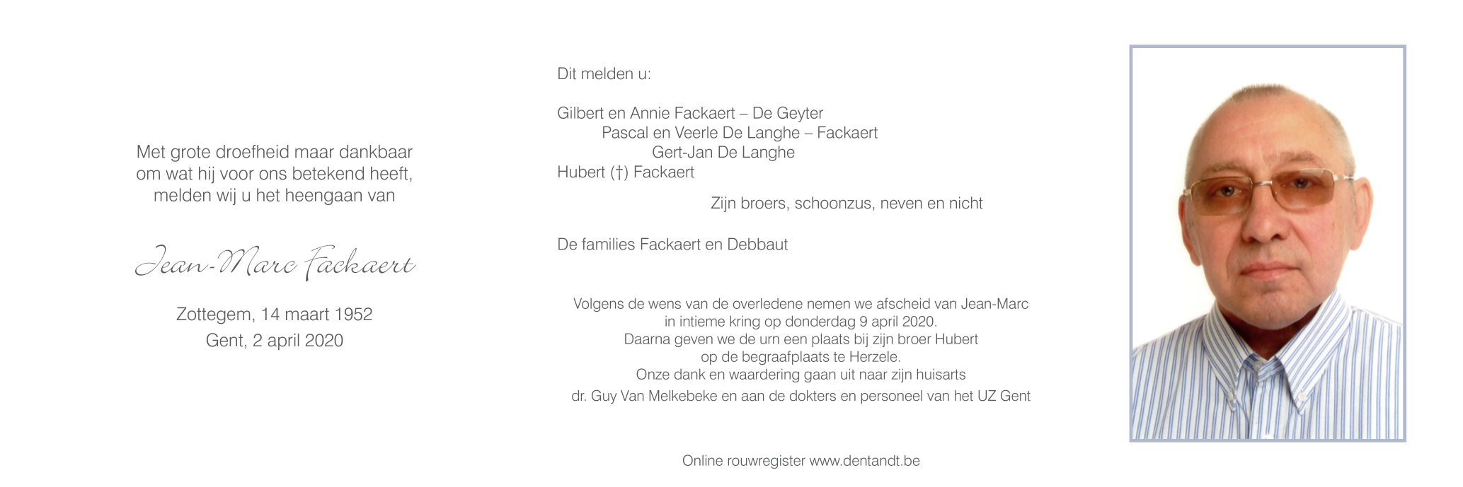 Overleden te Gent (9000) op donderdag 2 april 2020 op 68-jarige leeftijd