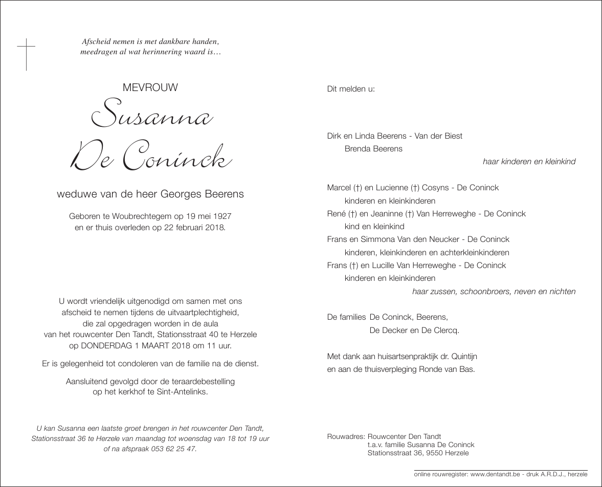 Overleden te Sint-Lievens-Esse (9550) op donderdag 22 februari 2018 op 90-jarige leeftijd