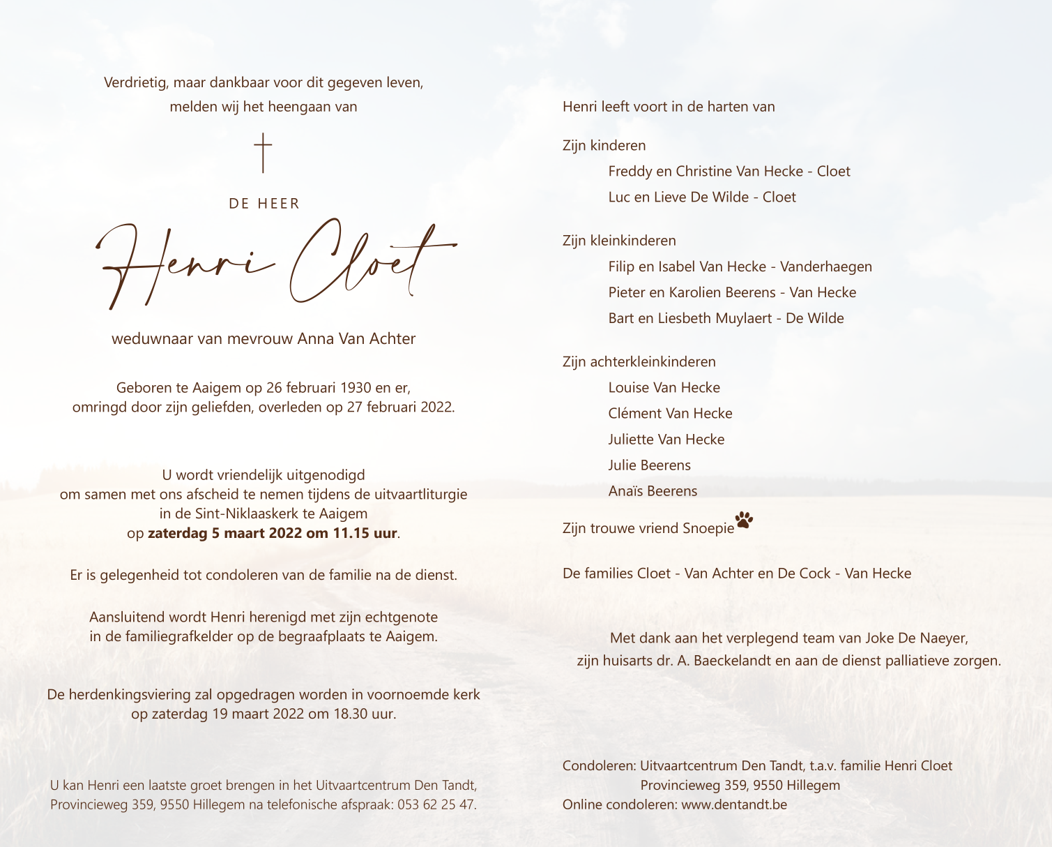 Overleden te Aaigem (9420) op zondag 27 februari 2022 op 92-jarige leeftijd