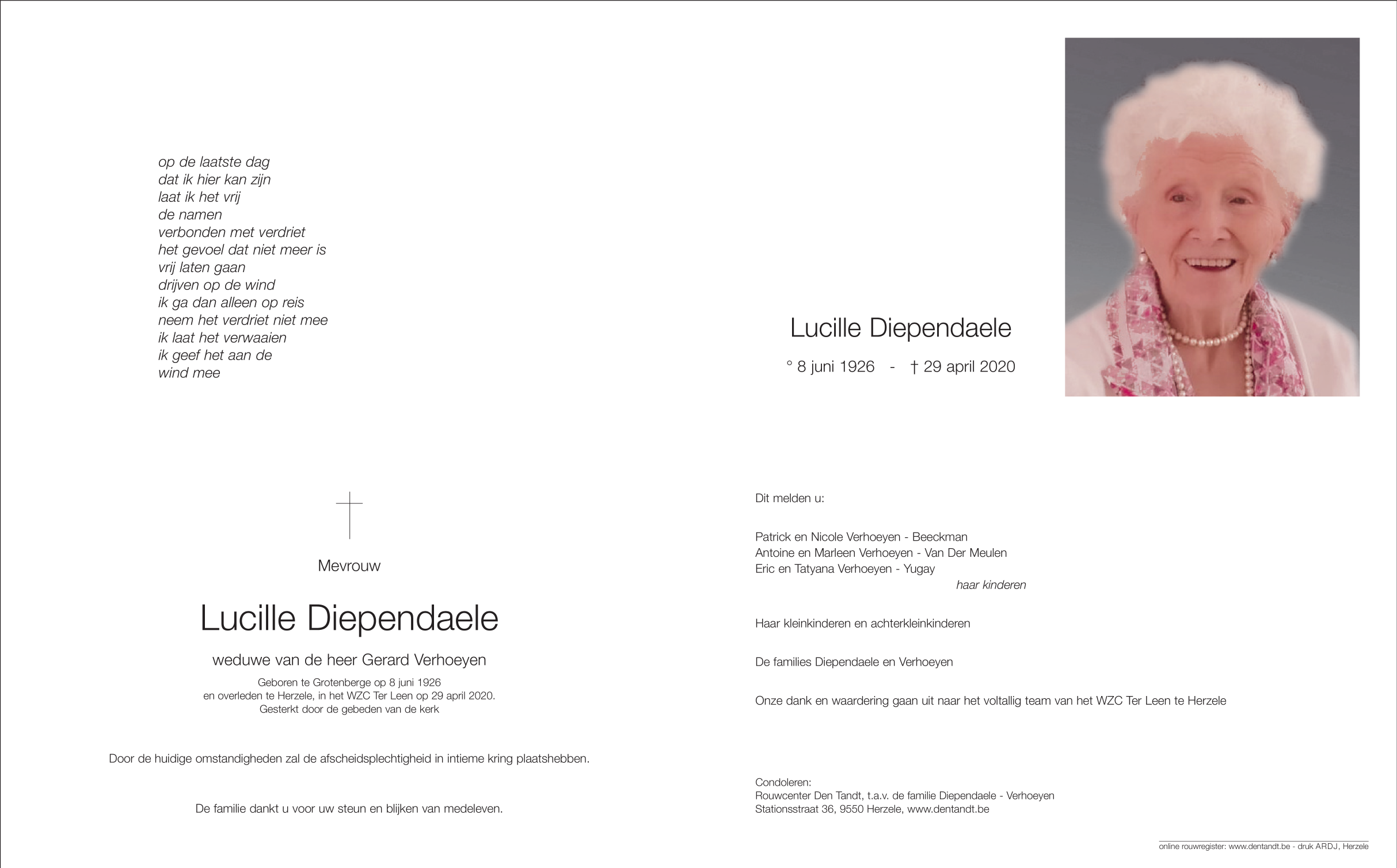 Overleden te Herzele (9550) op woensdag 29 april 2020 op 93-jarige leeftijd