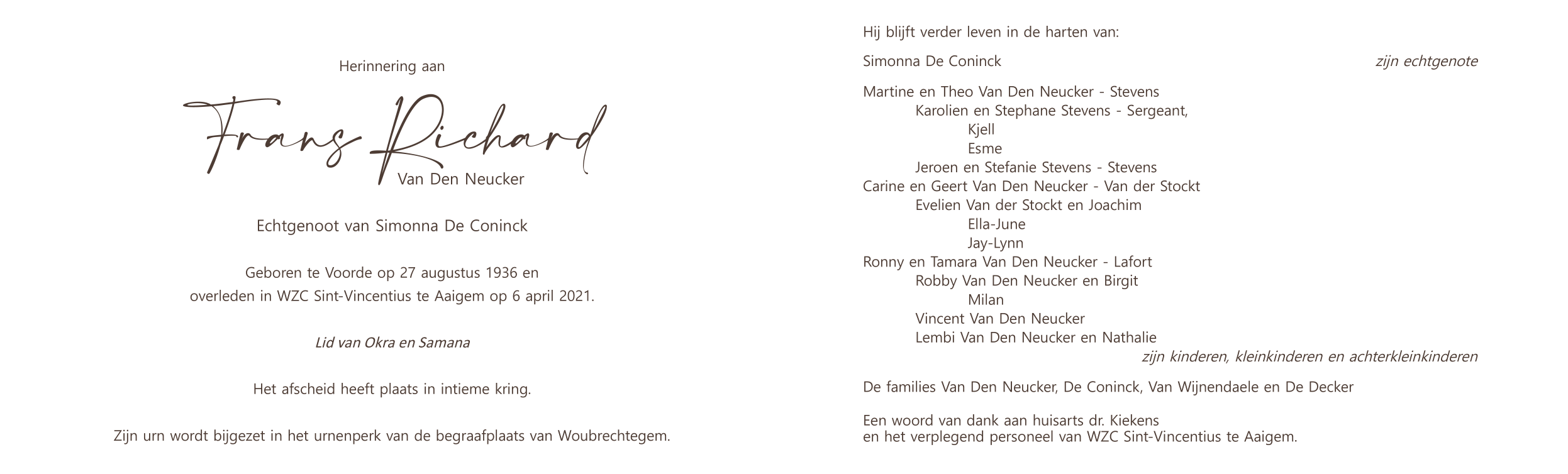 Overlijdensbericht binnenkant