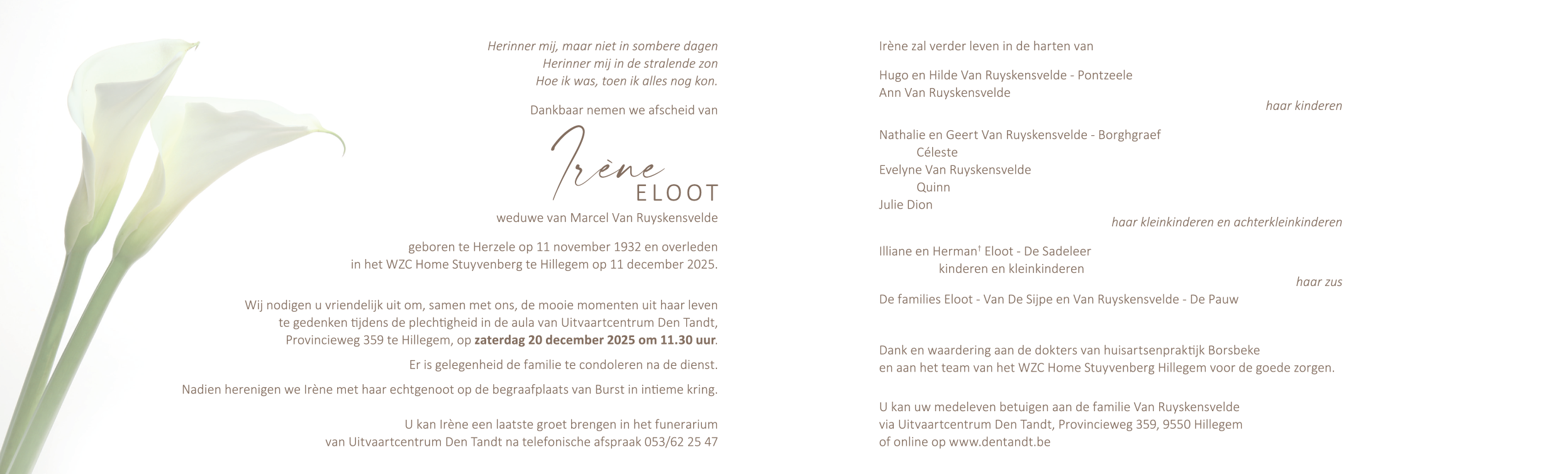 Overleden te Hillegem (9550) op donderdag 11 december 2025 op 93-jarige leeftijd
